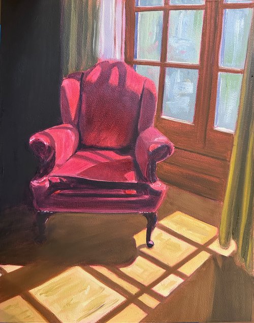 Sherry writes of her work: "Trying to escape the bleakness of my early life and the restrictions caused by a serious disability from before memory, I create in my paintings environments where I can encounter the creative, rich life of the spirit. Without my consciously intending to do so, many of these recent works are set in Europe where I traveled many times in my young adulthood to assert my independence. I work quickly, delineating forms with simple lines. The pictures are also touched by the dilapidated charm of darkness and humor caused by the tension between aspiration and unavoidable accident".